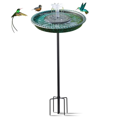 Featuring a solar powered fountain, this bird bath offers a hassle-free way to keep water circulating, which attracts hummingbirds and prevents stagnation. The continuous movement of water not only keeps the bath clean but also creates soothing sounds that enhance the outdoor experience. The 5-prong base stake provides exceptional stability, ensuring the bird bath remains upright even in windy conditions, making it ideal for patios, yards, and gardens alike.